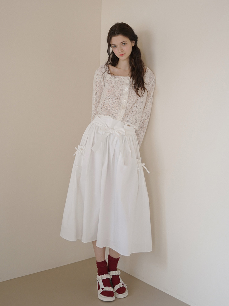 RIBBON POCKET COTTON SKIRT