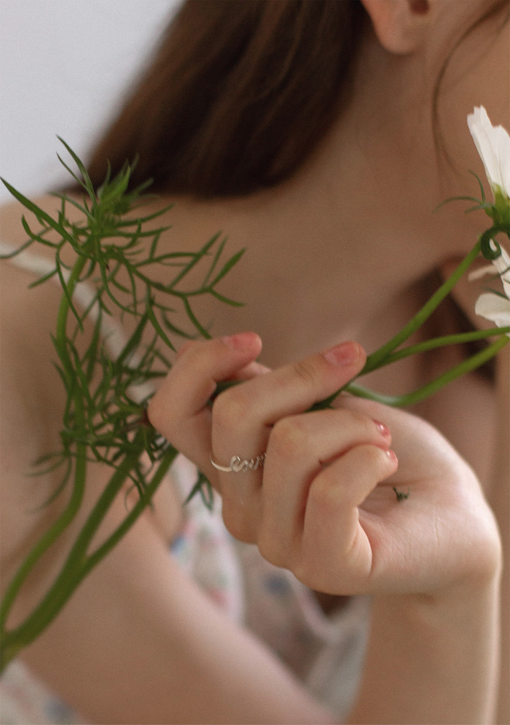 통통하고 감각적인 하트 쉐입을 매끄럽게 결을 살려 정교하게 수제작 하였습니다. 볼륨감이 느껴지는 실루엣을 완성하면서도 착용감을 고려하여 밴드의 속을 비워 무게감이 가볍습니다. 직접 왁스를 깎고, 은주물을 직접 수작업으로 줄질과 사포 작업을 거쳐 완성했습니다.