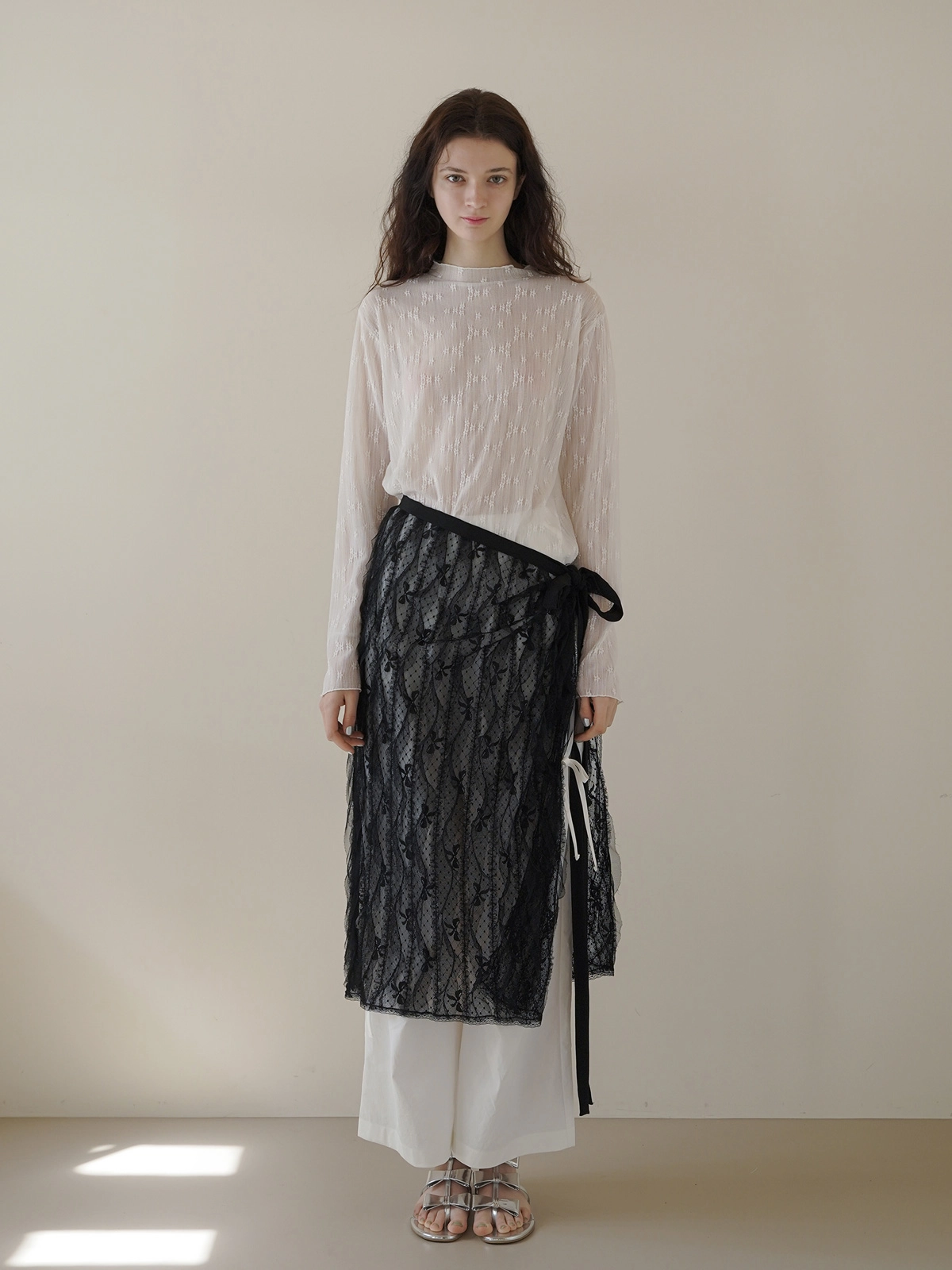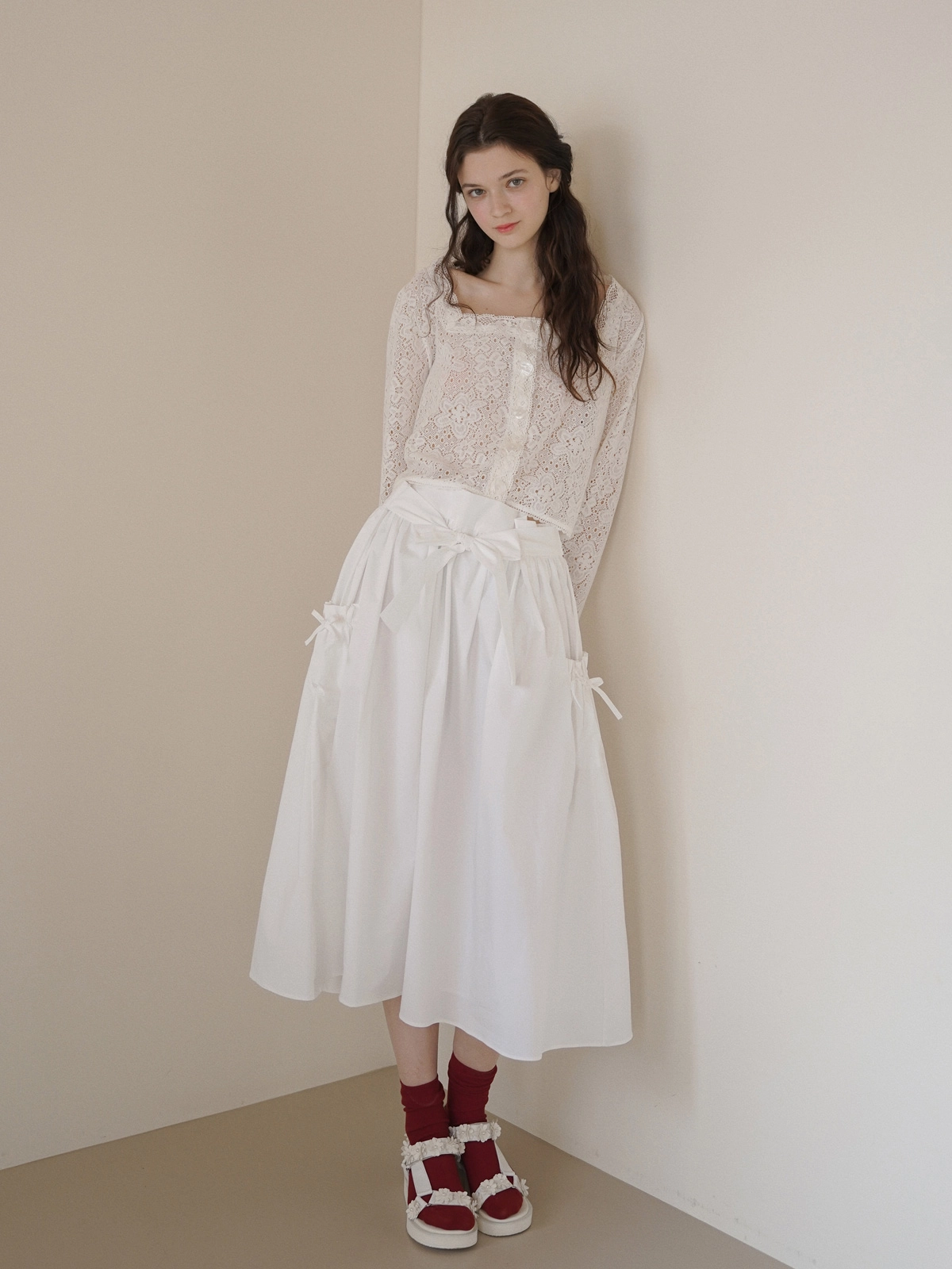 RIBBON LAYERED CHIFFON SKIRT - ivory